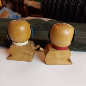 Vintage* Victoria BC Souvenir Puppy Salt and Pepper Shakers. Wood. 80s Approx 3" tall. Note missing nose on one shaker.