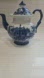 Vintage Victoria Ware Ironstone duplicate. Elegant blue and white ceramic teapot with intricate design. Perfect for tea lovers.