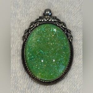 Vintage Victorian Inspired Green Silver Tone Pendant