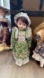 Charming porcelain doll dressed in a floral green dress with lace trim. Includes stand. Perfect for collectors.