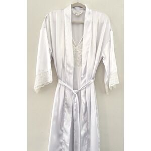 Vintage Victoria's Secret Coquette Maxi Slip Robe Set White Lace Lingerie 2pc XS