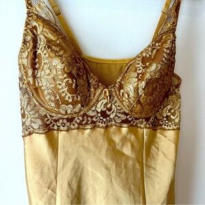 Vintage Victoria’s Secret Gold Satin Slip Dress M | Lace Bust Coquette Y2K