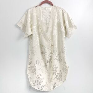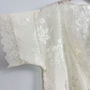 Absolutely dreamy vintage ivory satin robe with beautiful and delicate lace trim by Victoria's Secret.
