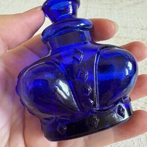 Vintage Victrylite Cobalt Blue Glass Crown Bottle - Made in Italy