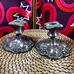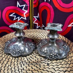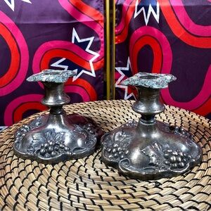 Vintage Viking EP Lead Tapered Candle Holders Candle Sticks Pair Marked Grapes