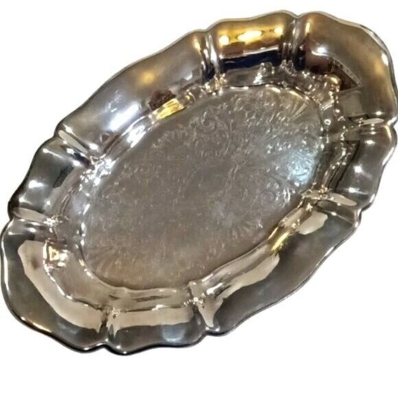 Vintage Viking Plate Silver Plated Canadian Oval Fluted Etched Serving Plate