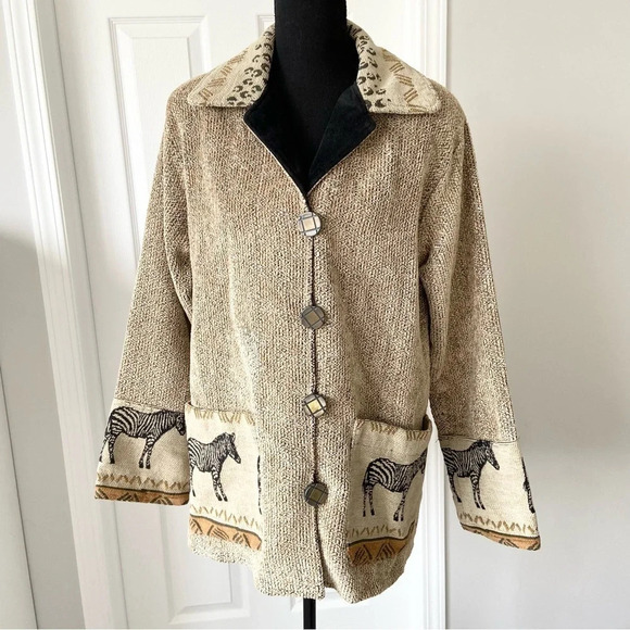 Vintage Villa Factory Western Zebra Print Woven Tapestry Jacket