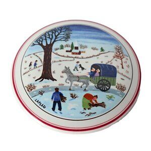 The idyllic rural scenes were painted in 1980 by Gérard Laplau, a French artist who was instrumental in establishing the popularity of naive art. This lovely little candy box is in excellent vintage, preowned condition. It would be perfect for holding your precious rings at your bedside.