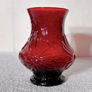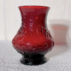 Vintage Vintage Anchor Hocking Royal Ruby Red Glass Vase Daisy Rain Flower