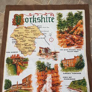 Vintage Vintage Yorkshire England Map Cotton Tea Towel England Souvenir