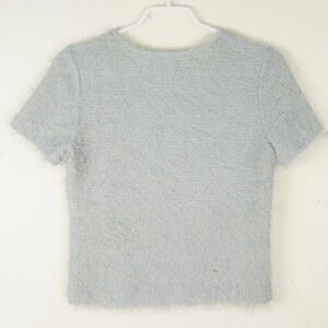 Vintage Vivian Shyu Fuzzy Boucle Ice Grey Blue Short Sleeve Knit Top
