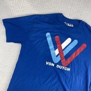 Vintage Von Dutch T Shirt Men XXL Y2K Classic Big Logo Blue Crewneck Read*
