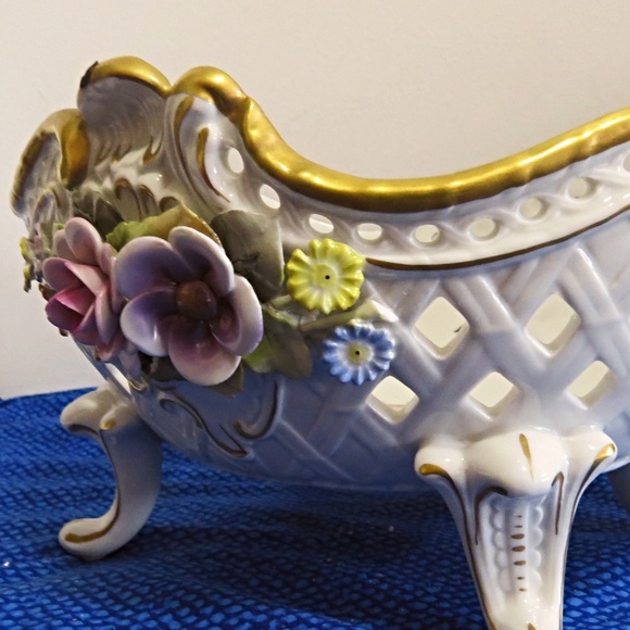 Vintage Von Schierholz Dresden Porcelain Display Bowl | Flower Encrusted Dresden
