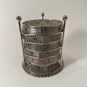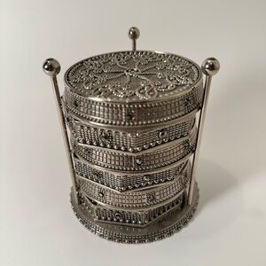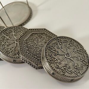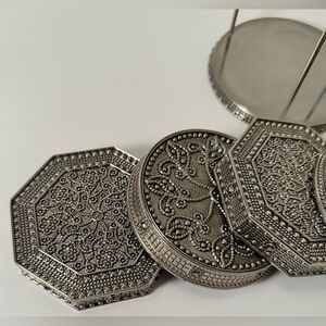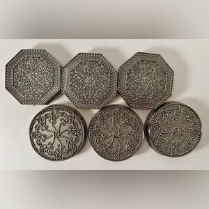 Vintage WALLACE Silver Coasters, Black Rhinestones, Rare7 Pieces, 2 Shapes