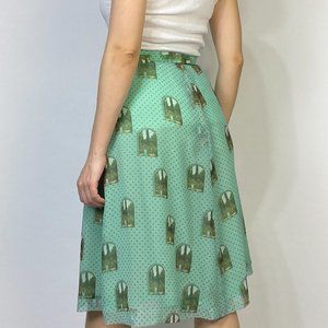 Super cool vintage handmade chiffon skirt with the most unique window to the garden scene print! Just so cool! No tags, fully lined.