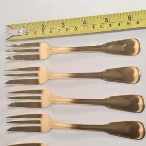Expertly crafted in Germany from high-quality stainless steel with durable hard gold plating, these forks bring a touch of timeless sophistication to any dining occasion. Perfect for desserts, tea parties, or special gatherings, they combine elegance and lasting quality.