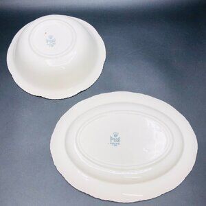 Vintage WOOD & SONS England Blue Band Floral Dinnerware Service Bowl and Dish