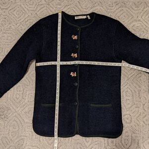 Navy blue mid to heavy weight wool shaket granny grandma core wool with embroidered dogs