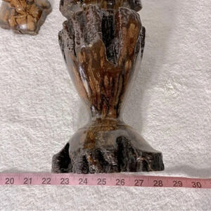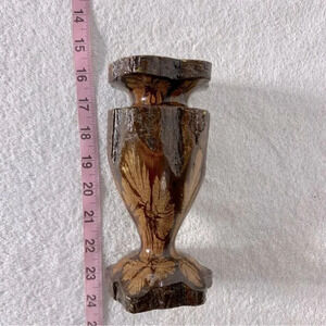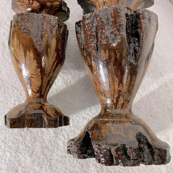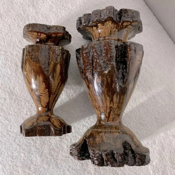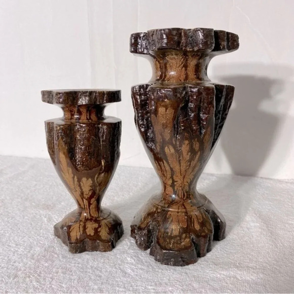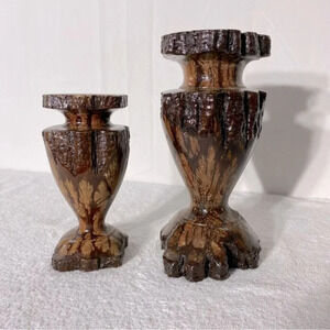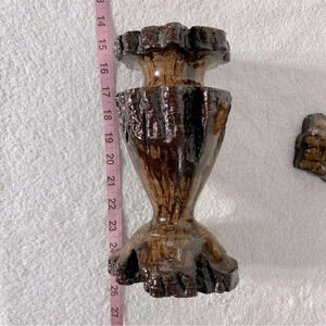 Vintage Wabi-Sabi Hand Turned Live Edge Chrysanthemum Wood Vase Candle Holders