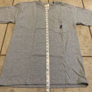 Step into the magic with this classic vintage Walt Disney World t-shirt. This grey heather tee features an embroidered Mickey Mouse peeking out of a front chest pocket, offering a subtle and stylish nod to the iconic character. A must-have for any Disney fan or collector.