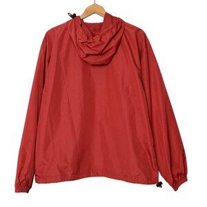 Step back in time with this Vintage Walt Disney World Red Windbreaker Jacket, a true gem. This jacket features a classic design with a nostalgic touch, perfect for any Disney enthusiast. The jacket showcases a charming Mickey Mouse graphic on the front, adding a playful and whimsical vibe to your outfit. Stay cozy and stylish with the half-zip feature, while also making use of the convenient kangaroo front pocket for storing your essentials. Additionally, the zipper pocket provides extra security for your belongings, and the drawstring bungee hood offers adjustable coverage for varying weather conditions. Embrace the magic of Disney with this iconic red windbreaker that is sure to turn heads wherever you go.