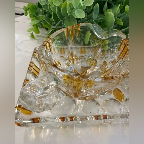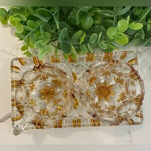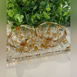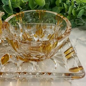 Vintage Walther Germany Cut Glass Cream and Sugar Set Yellow and Clear with Tray