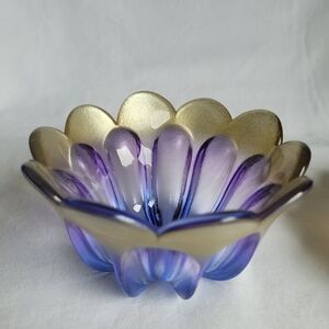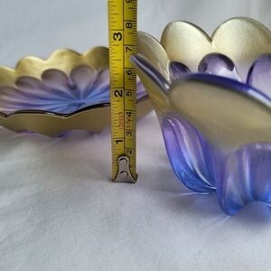 Vintage Walther Glas Bowl and Plate Gold Lilac Purple Iridescent Flower Germany