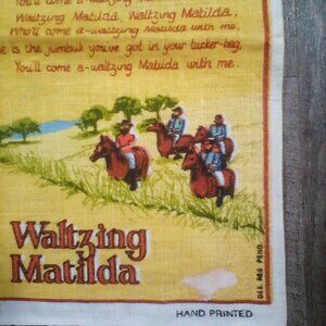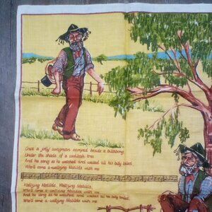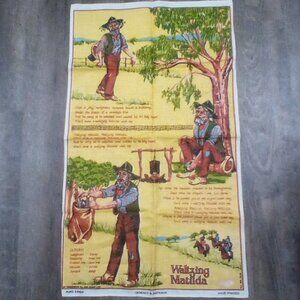 Vintage Waltzing Matilda Pure Linen Tea Towel Australia Hand Printed NEW
