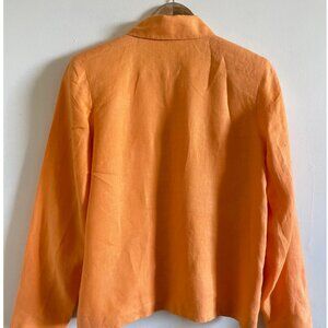 Vintage washed tangerine, Irish linen light blazer. Looks like a fitted chore coat/utility coat. Classy but chill! 100% Irish Linen - incredible quality and colour!