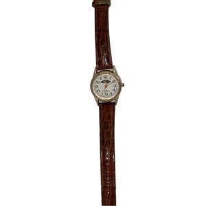 A vintage water resistant quartz watch. Surface is fairly scratched. Watch strap is used and shows ware. Faux leather strap. I have not tested to see if it still works. Could possibly be fixed up for use but could also be used for parts, crafting or kids education project. Sold as is.