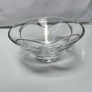Vintage crystal bowl by Waterford features organically shaped, intertwined cuts, creating a sense of motion and guiding the eye along the sides of the piece. The distinctive, minimalistic pattern of cuts in sparkling crystal incorporates many of Waterford's signature cutting techniques. The bowl is signed in etching on the bottom with the brand's logo.