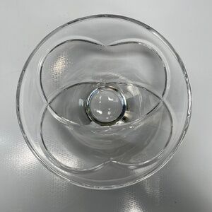 Vintage crystal bowl by Waterford features organically shaped, intertwined cuts, creating a sense of motion and guiding the eye along the sides of the piece. The distinctive, minimalistic pattern of cuts in sparkling crystal incorporates many of Waterford's signature cutting techniques. The bowl is signed in etching on the bottom with the brand's logo.