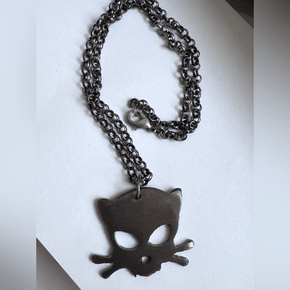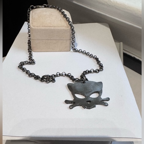 😈 Vintage Watto Outlaw Bad Kitty Gunmetal Steel Necklace 😈