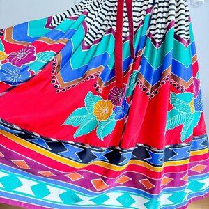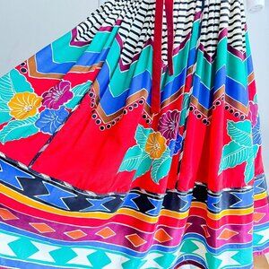 Vintage Wayne Clark Colourful Geometric Print Leather Detail Maxi Skirt S.