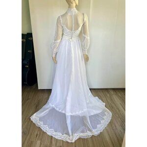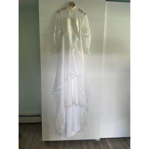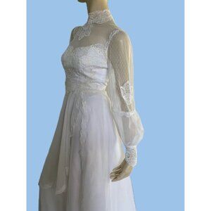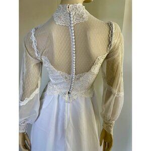 Vintage Weddjng Dress, Size S, 1980s High Neck Lace