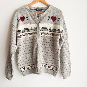 Vintage Weekend Edition Farm Hearts Print Cardigan Sweater M