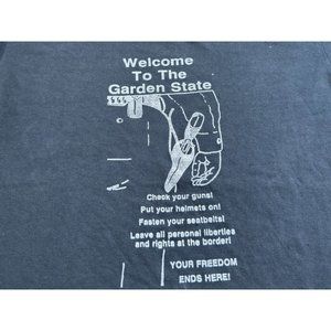 Vintage Welcome To Garden State Shirt Gun Freedom Black Made In Usa Single Stitch Top