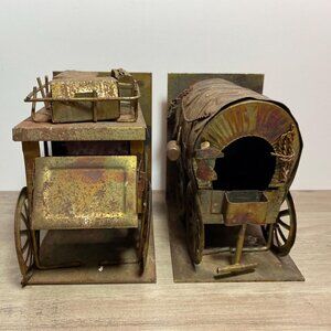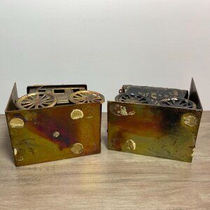 Vintage Wells Fargo Carriages Flamed Brass Bronze Metal Bookends