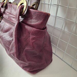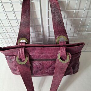 Vintage Wenz Mauve Leather Shoulder Bag Unique Design Zipper Close Large Grommet