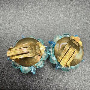 Vintage West Germany Signed 1950s Blue Cluster Earrings - Clip On