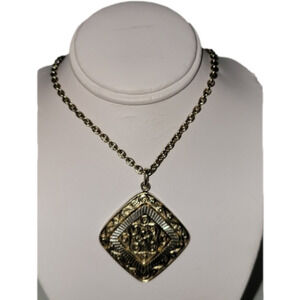 Vintage West Germany pendant on a chain, yellow metal, pendant- 3.5/3.5 cm, 72 cm long chain Vintage from the 1970s