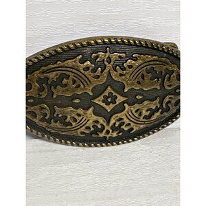 Vintage Western Belt Buckle Oval Cowboy Rodeo Country Oval Ornate Brass 3.5 x 2"