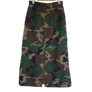 Vintage Western Camo Denim Maxi Skirt with Pockets S M