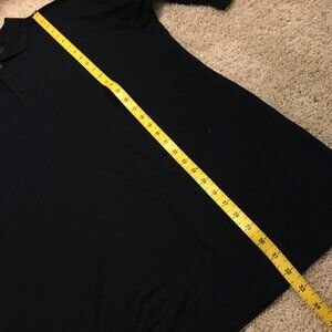 Very good preowned condition plaid, dark navy blue, rayon blend, polo shirt by Western Concepts. Nice quality piece, stretchy, lighter weight, conforming fabric. The sleeves are slightly longer than usual and the navy colour is so dark, it's almost black.