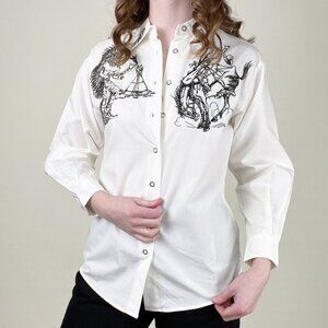 Vintage Western Embroidered Button Up Shirt Coastal Cowgirl Cowboy Rodeo Country