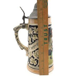 Crafted in Western Germany, this vintage beer stein exudes a rustic charm that harkens back to the Bavarian taverns of yesteryear. Made from durable stoneware, this piece features intricate relief scenes that transport you to a German beer hall. The pewter lid adds an authentic touch, making it a true collector's item for any beer enthusiast. With a retro design that pays homage to the Prost culture, this stein is a nostalgic reminder of traditional German craftsmanship.