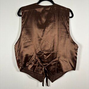 Vintage Western Suede Embroidered Vest Brown Cream Boho Ranch Cowgirl Size Large