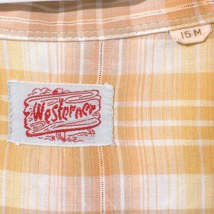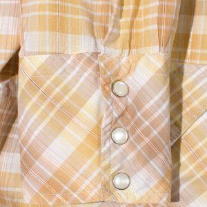 Vintage Westerner Men's Pearl Snap 15x33 Gold Plaid Cotton Poly DoublePoint Yoke