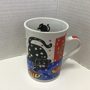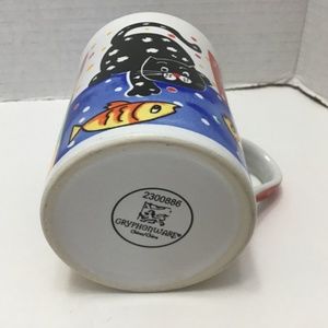 Vintage Whimsical Cat with Fishes Gryphonware Mug