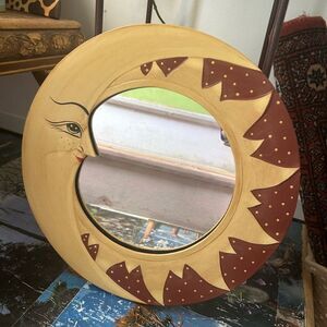 Vintage Whimsical Celestial Sun Moon Crescent Face Wall Mirror 15.5"